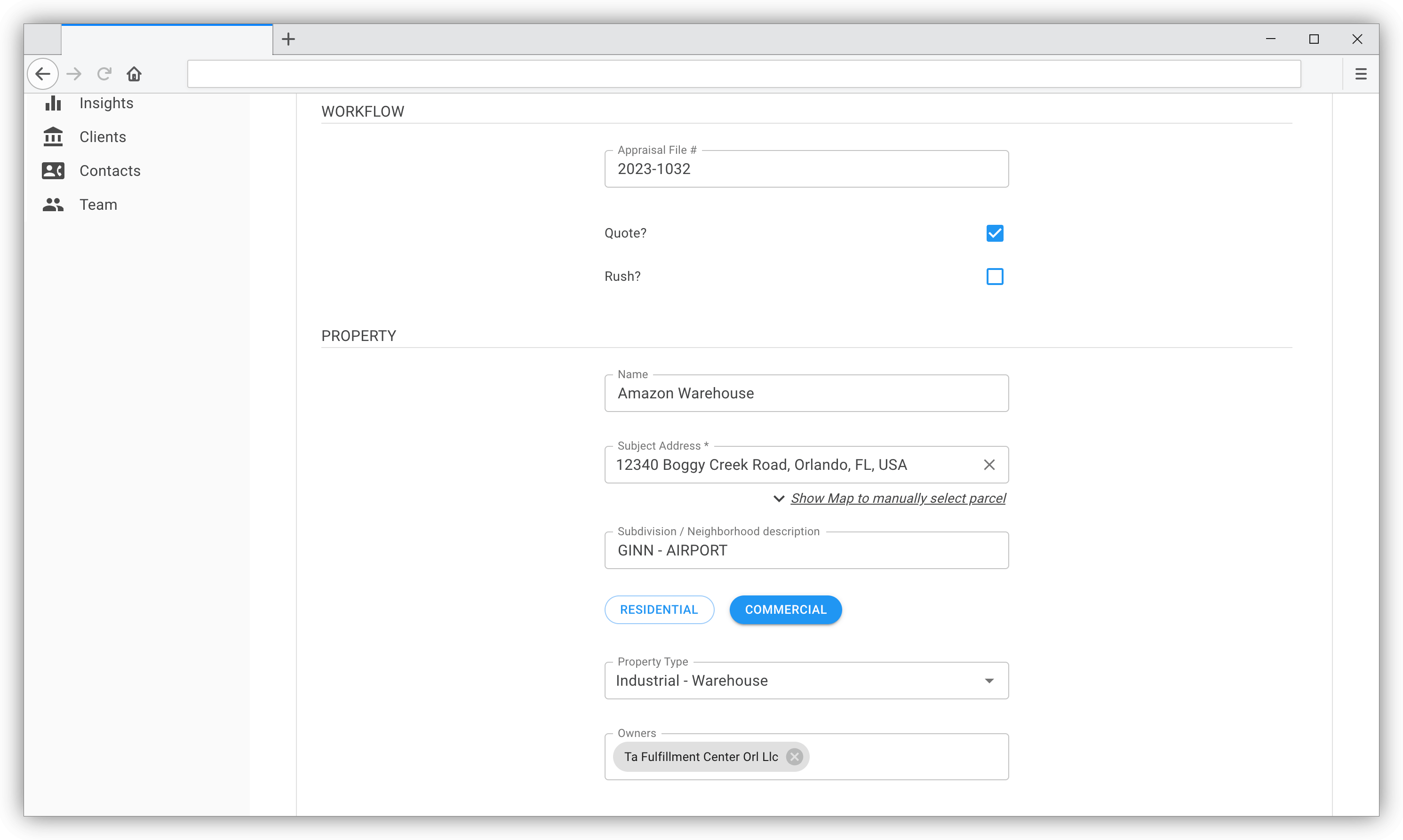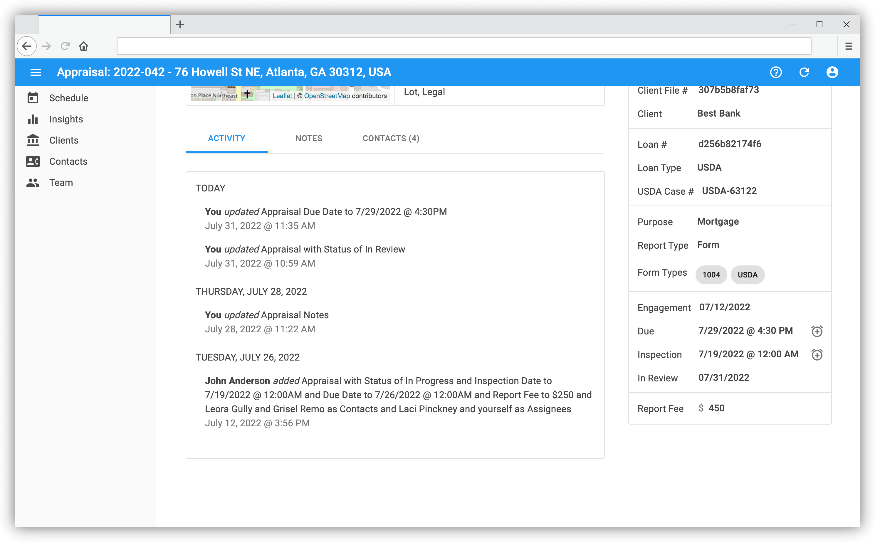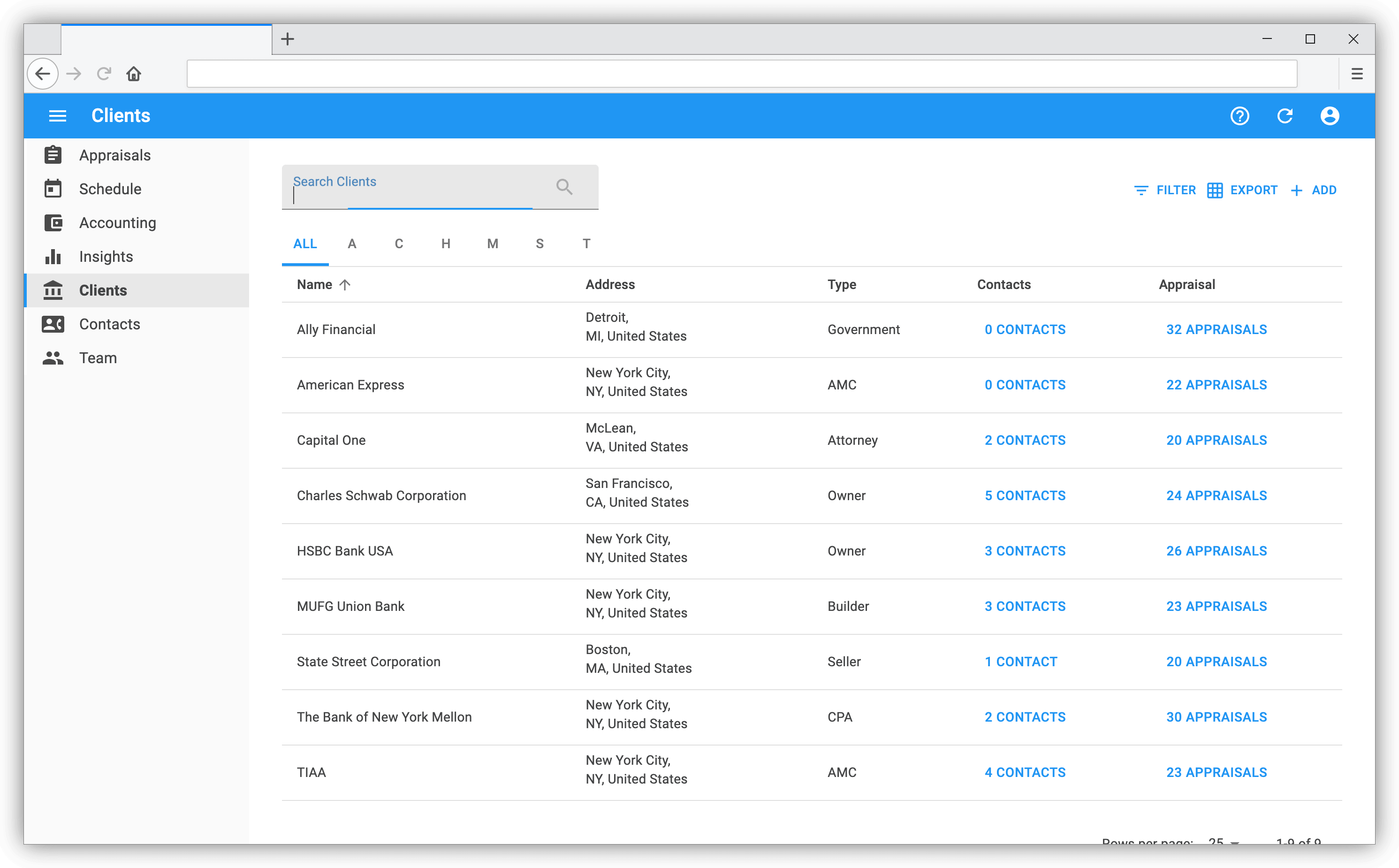 Appraisal Inbox's CRM (customer relationship manager) centralizes all client and contact details, directly linking them to their appraisal orders.