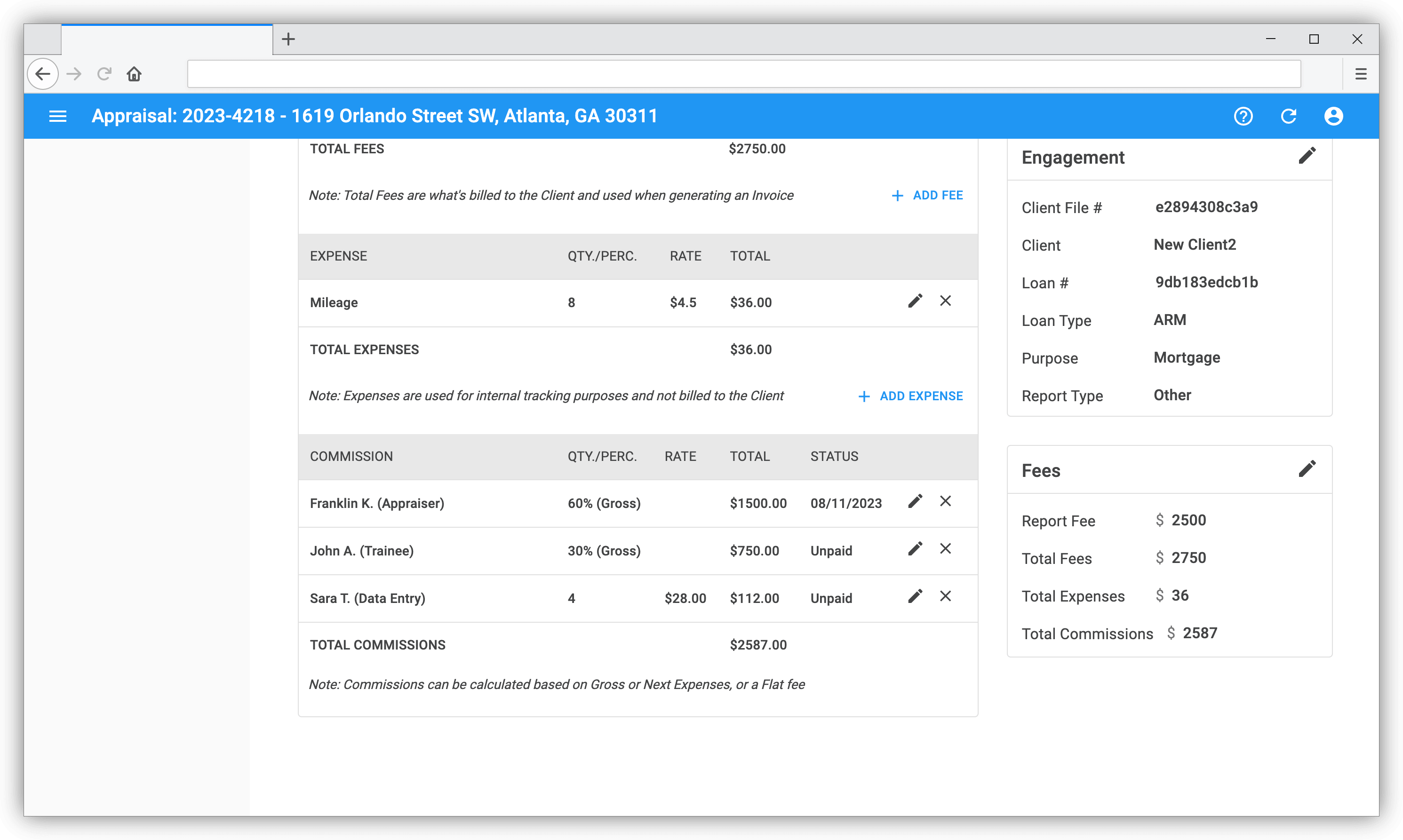 Fee splits are automatically tracked by Appraisal Inbox, with configurable default splits based on the assignee's role and even property type.