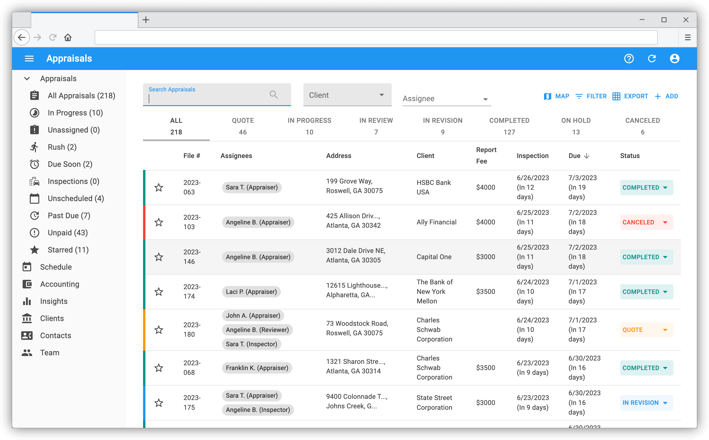 Appraisal Inbox's smart assignment log tracks all of your team's appraisal orders through each step of the valuation process.